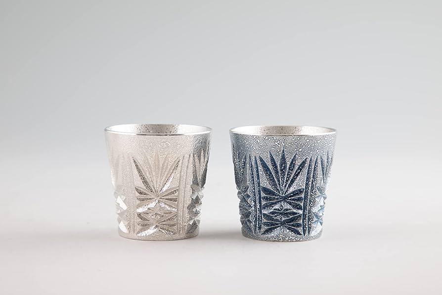 薩摩切子 グラス 木箱入り 錫 切子グラス 2個セット 白吹雪加工 赤吹雪漆加工 120ml [No.96